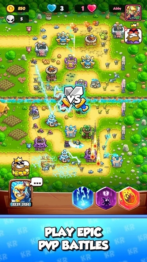 《王国保卫战:战略对决》是一款策略塔防游戏。游戏以卡通风格塑造场景与角色形象,每个角色都具备独特能力,玩家可构建专属牌组,在对战中引导敌方跟随自身节奏,逐步夺取最终胜利。随着游戏推进,玩家能够解锁更多传奇英雄与强力防御设施,持续扩充战术储备,同时满足收集与成长的需求。