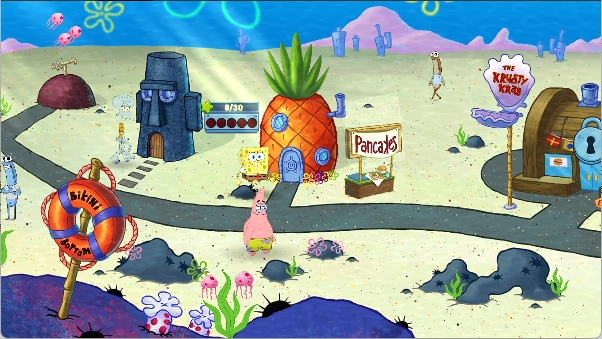 4.玩家冒险的时候就可以参观最爱的海绵宝宝地标了,其中包含了多个场景,自由的去探索。