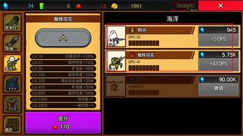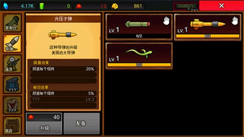 3、还可以对不同的导弹进行升级,导弹升级后将得到效果升级;