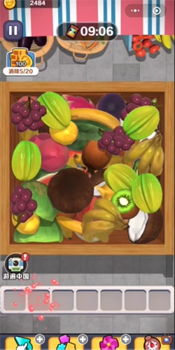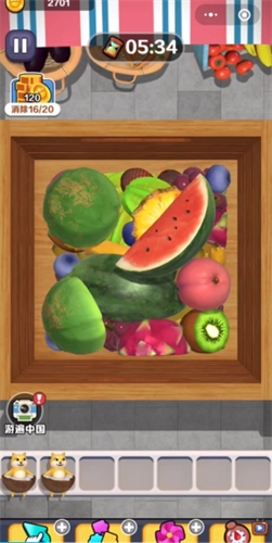2、游戏中玩家需要通过点击水果将其放入下方的栏位中,拥有三个相同的水果即可完成消除;