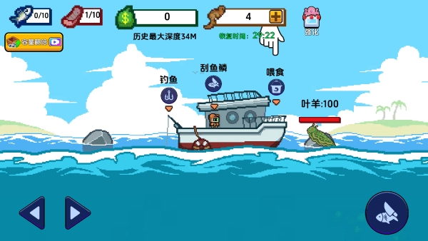 血量减少为零时就会获得钱币奖励,如此往返来钓鱼,非常有趣。