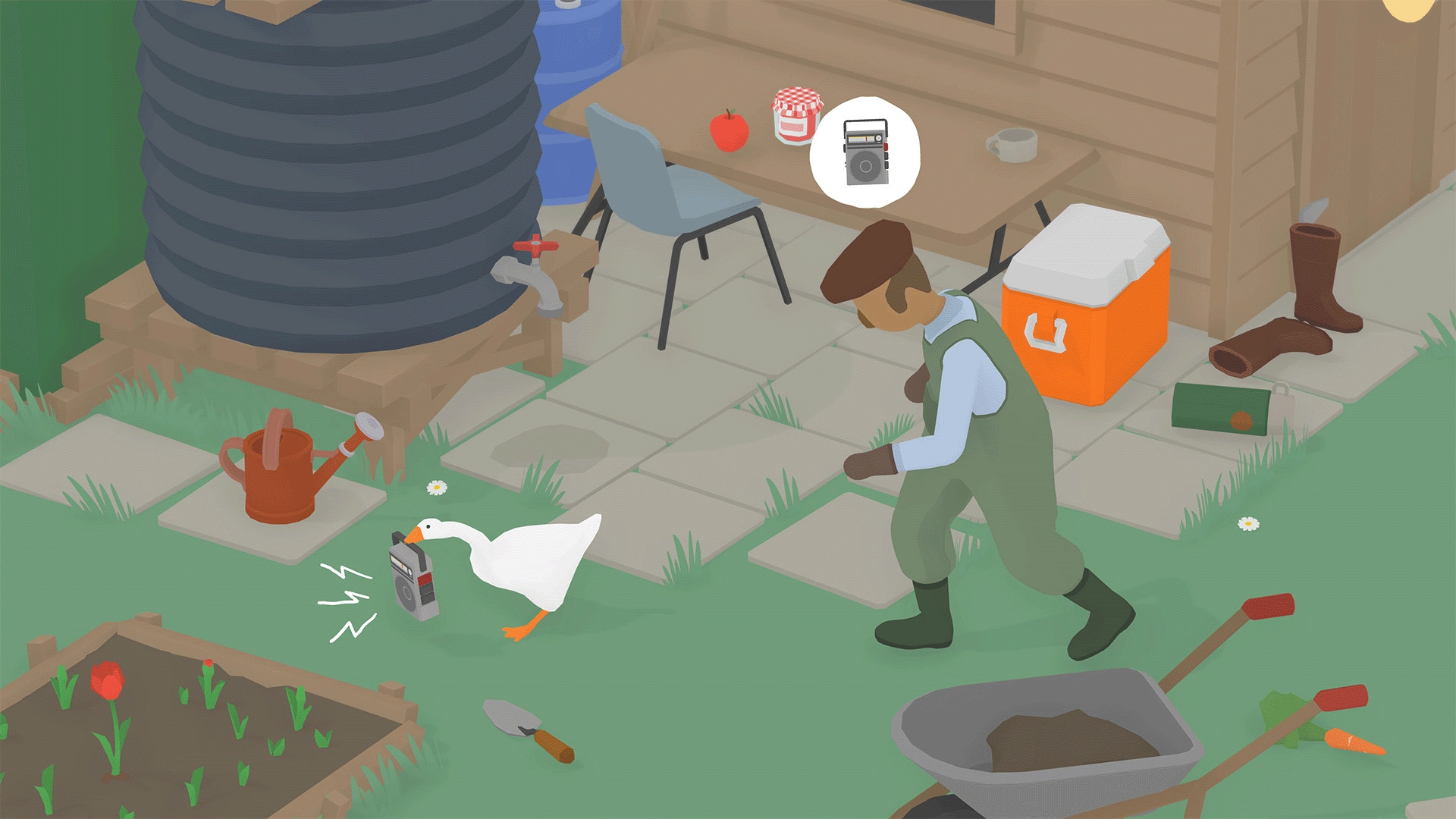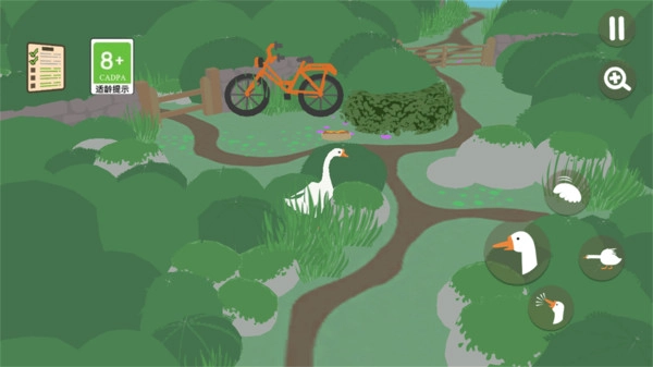 2、在农场、村庄随意探索,用大鹅的嘴和走位,对人类、物品进行互动恶搞。