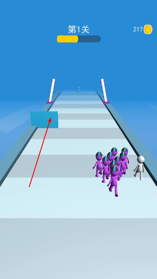 2、途中遭遇蓝色障碍,借助壮大的队伍推动障碍前行,突破路线封锁,向终点迈进。