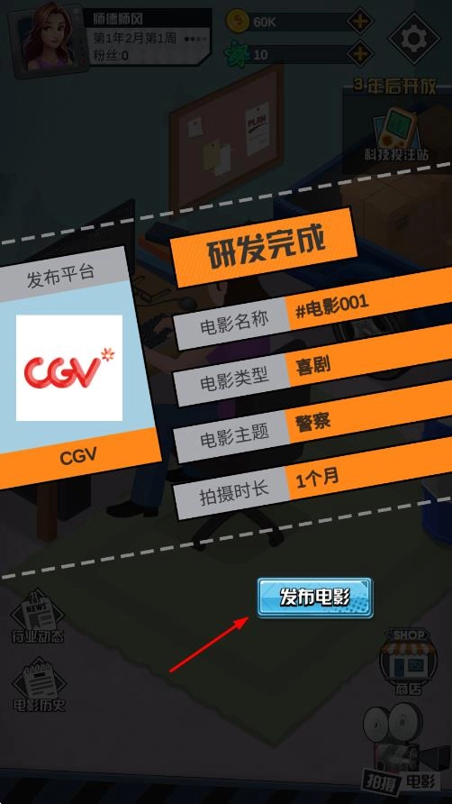 3、影片制作完成后,需制定相应的宣传策略与上映计划,随后依据票房表现和观众口碑来获取收益,再将所得利润用于设备升级、明星签约等方面,进而解锁更高质量的电影项目。