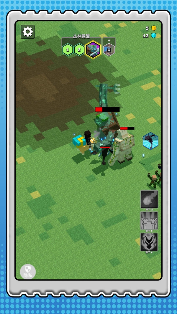 1、进入游戏后选择丛林、沙漠等不同场景,操控角色进行移动,点击敌人即可发起攻击,通过完成消灭指定敌人、护送等任务来推进主线剧情,进而解锁更多新玩法。