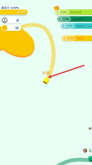 2、如果遇到其他的玩家,要先观察他们的移动的轨迹,如果看到对方在扩张,可找准时机截断他们的路径。