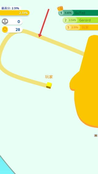 1、需要滑动屏幕控制黄色的方块来移动,画出一定的路径占领空白区域,闭合路径可将空白处变为自己领地。