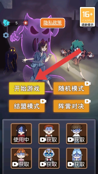 1、玩家可点击开始游戏进入到场景中,还有其余的模式:随意模式、结盟模式、阵营对决,可根据喜好进行选择。
