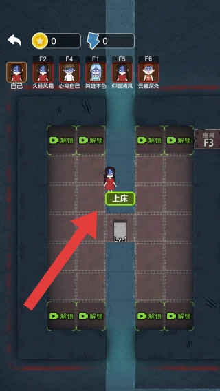 3、进入到场景中,6位玩家需要各自逃离到不同的房间中,每一个房间只能够容纳一个人,进入后点击上床的按键。