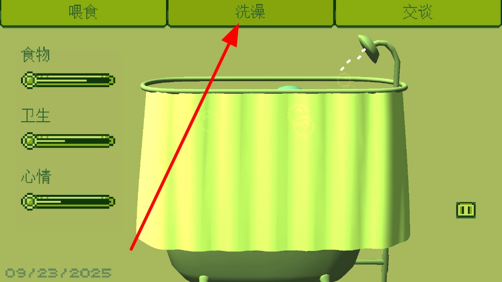 3、角色的卫生状况也很重要,点击洗澡选项,让角色进行洗澡,保持角色的卫生清洁,这对角色的整体状态有积极影响。