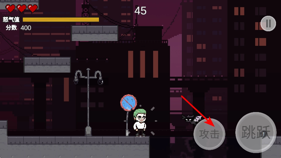 1、点击跳跃按钮,可使角色跳跃过障碍物或敌人,这是躲避危险和关卡的基础操作,掌握跳跃时机。