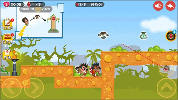 屁王兄弟双人版是一款以原始人兄弟为主角的双人合作冒险游戏。玩家需和伙伴分别操控擅长“放屁飞行”的两位兄弟,在遍布原始丛林与古老遗迹的关卡里开启冒险。通过交替运用喷气飞行技能、触发机关以及搬运物品,一同层层谜题,收集齐散落的图腾碎片。