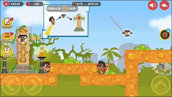 3、收集到的图腾碎片需要两人一起搬运到祭坛的柱子上,等所有柱槽都被填满就能完成关卡。1、游戏采用Q版角色造型,配合轻松明快的背景音乐,打造出满是童真趣味与诙谐感的氛围。