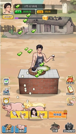 2、玩家扮演养猪人,经过精心照料和培育小猪,逐渐逆袭成为首富。