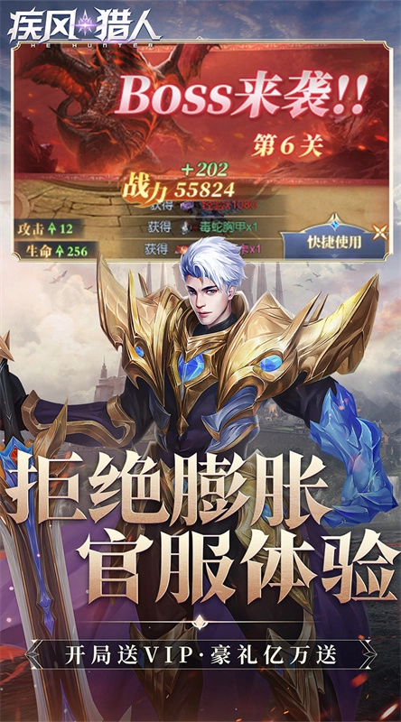 在《疾风猎人》这款游戏里,会为玩家准备海量的装备与技能,不同的技能和装备都能助力提升战斗能力,而且游戏内还有十分独特的挂机系统,能极大地解放玩家的双手。