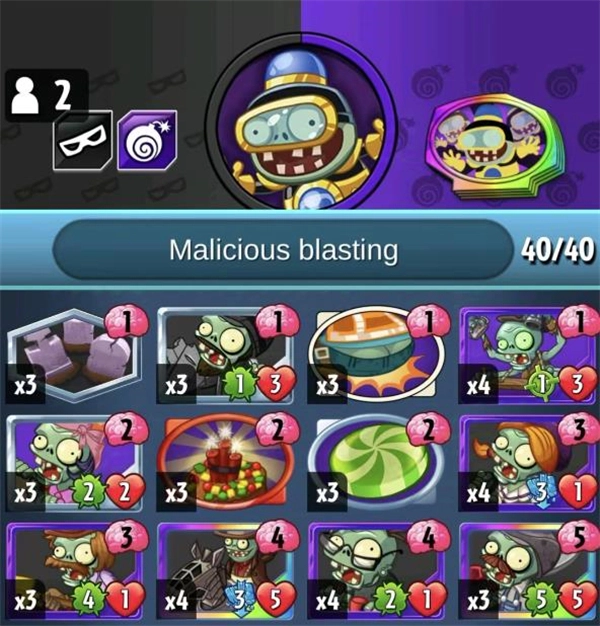 1、不同的植物英雄可以选择,也有僵尸卡牌让你使用。