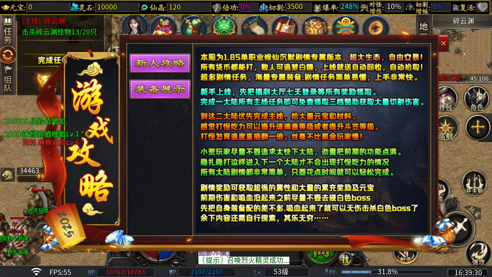 1、新区在线奖励,七日登录赠送大量材料一级元宝,更有首爆奖励和实物兑换获取大量仙晶,让你前期发育不愁。