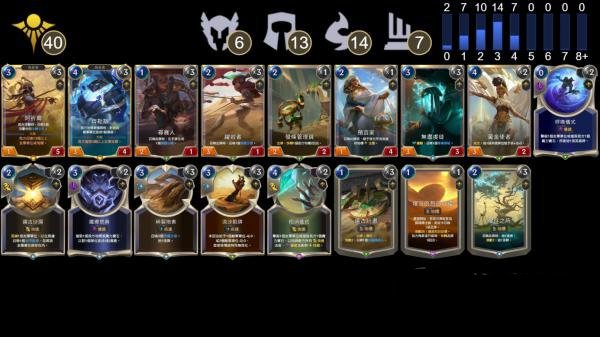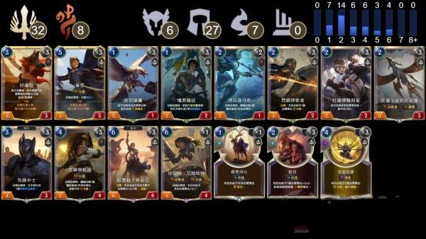例如:上图为大家演示的图片,出现了“盖伦”和“布隆”,则该卡组由“德玛西亚”和“弗雷尔卓德”两个阵营组成。