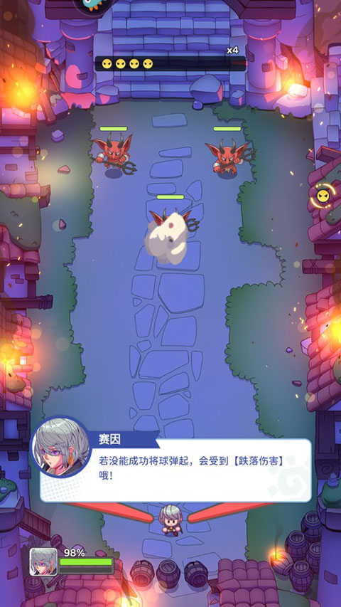 4、如果弹射球未成功能弹起,你将会受到伤害。