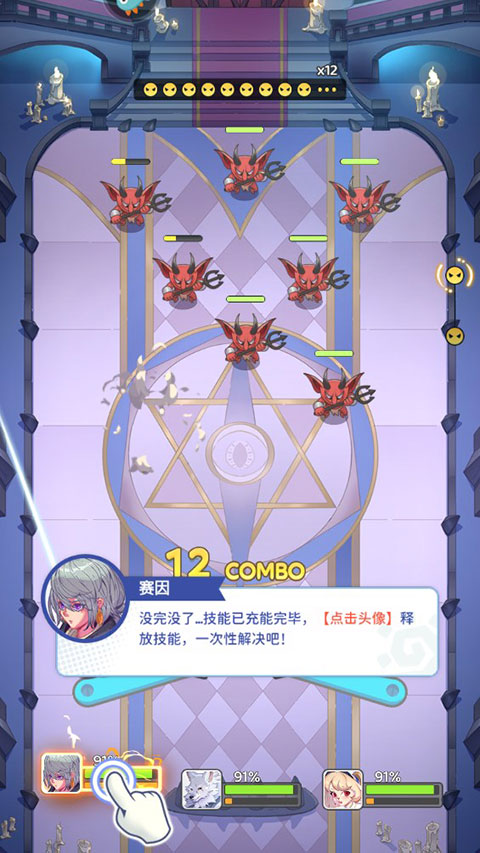7、点击赛因的头像,释放攻击技能,一次性解决遇到的麻烦。
