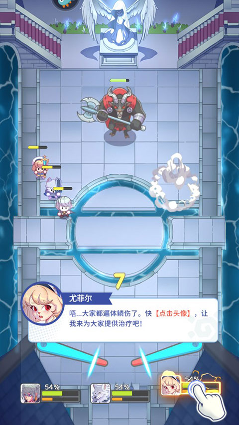 8、如果角色受伤,点击治疗师尤菲尔,为大家提供治疗。