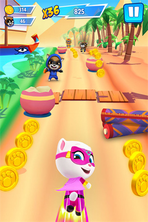 在汤姆猫英雄跑酷内购版游戏中汤姆猫和安吉拉将变身为超级英雄,跨过各种障碍,打败浣熊,拯救家族的小伙伴。 赚取金币和钻石,重建家园;里面包含了各种不同的皮肤供你解锁,各种力量道具可谓是千奇百怪,但是玩起来确实别有风味也是可以理解的,符合大众口味。是放松减压的必备神器,值得下次收藏。楼顶秋千、惊险龙背、中国古城、热带沙滩,都无法阻挡英雄们前进!