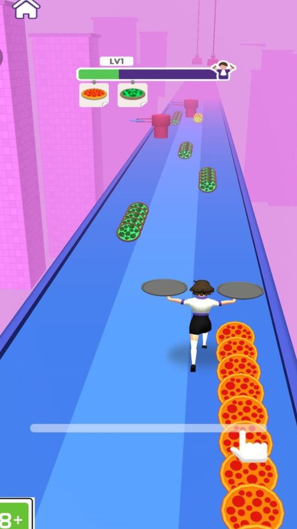 3、集趣味闯关与角色养成于一体,体验刺激的跑酷之旅和美味的披萨世界。