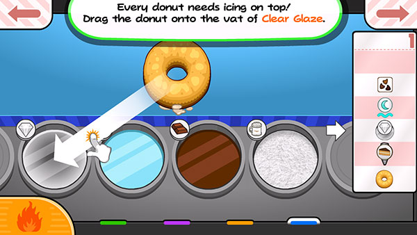 5、还有【配料】,滑动切换至顾客想要的配料,将其撒在甜甜圈上。