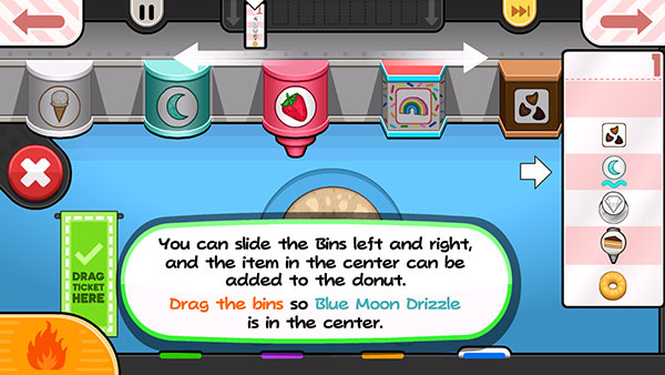 6、完成甜甜圈的制作后,将【订单】拖动至左侧,即可交付给顾客。