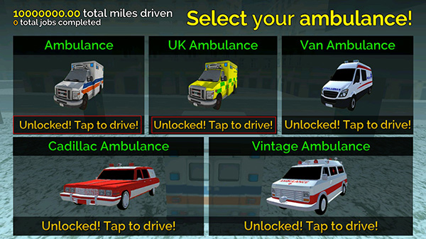 为解锁全部救护车,玩家可以随意挑选救护车进入游戏