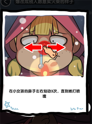 小女孩鼻子左右滑动三次,打喷嚏熄灭火柴即可通关。