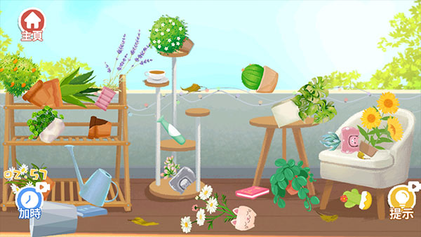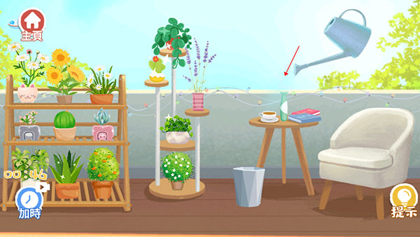 5、然后将洒水壶浇灌一下花朵即可完成通关,游戏中的每一个