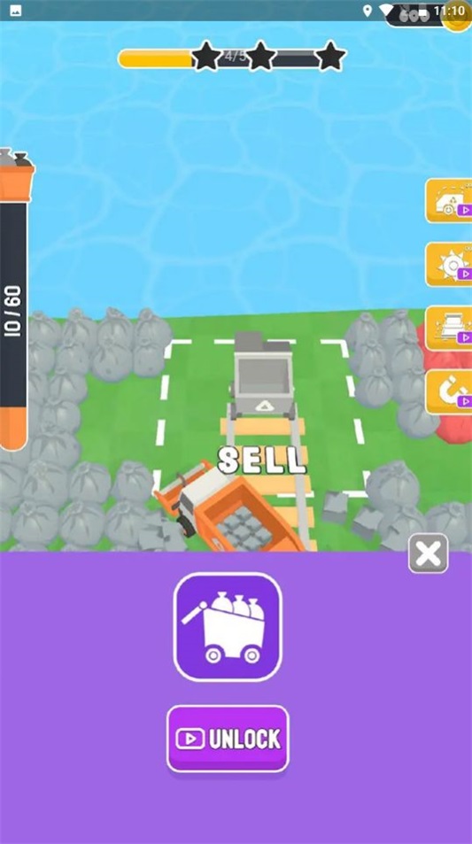 1. 游戏为玩家提供了多种类型的大货车,它们大小各异,所能运输的垃圾量也不尽相同。