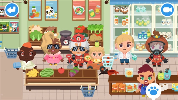 熊猫博士小镇游戏里的角色、服装、发型、宠物以及道具等,能和其他游戏实现互通,同时还设置了更多趣味内容等你去体验。玩家只需点击屏幕右上角的橙色地图按钮,就能将所有可访问的区域尽收眼底。