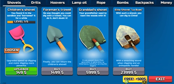 《掘地求财》中文版——一款以挖洞为主题的游戏:从自家院子起步,拿起铲子,深入地下数百米探寻宝藏!你身为挖掘者,决心在中国挖出一个无底洞!你能否挖出长达数公里的竖井,从而寻得所有宝藏呢?途中还会遭遇岩石和石头哦!