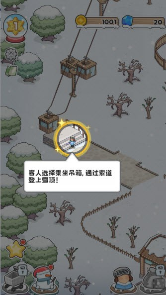 2、跟随新手引导建造滑雪场,准备迎接我们的第一位客人。