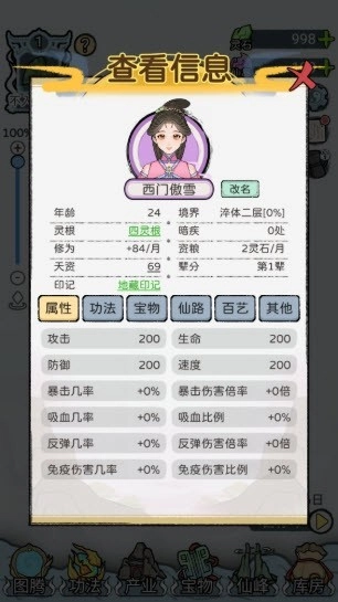 在《修仙世家模拟器》里,玩家可借助游戏的人生模拟玩法,感受掌控修仙家族命运的奇妙经历。该模拟器巧妙融合修仙主题与家族经营元素,玩家于游戏中化身修仙家族的老祖,身负引领家族走向辉煌的重任。从规划家族发展战略,到分配后辈的修炼资源,每一项决策都关乎家族未来的命运走向。