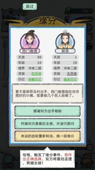5、按照初期指引,你需要先找到一位合适的道侣,开启双修之旅;