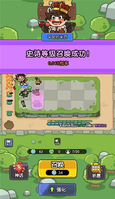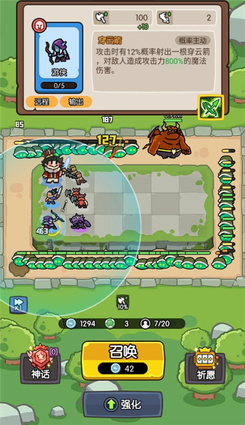 神之召唤这款游戏,在玩法方面,主要以随机召唤与合成机制为主。玩家进入游戏后,英雄会随机刷新,召唤出的英雄能够通过三合一的方式进行合成,从而获取更高级别的英雄,且还能强化其属性。要是获得特性人物,便可以合成神话英雄。玩家在游戏界面中可对英雄进行升级,进而获取更多属性、技能效果。在游玩过程中,游戏有着魔性的背景音效与新奇的画风设计,能让你卸下疲惫,舒缓心理压力。