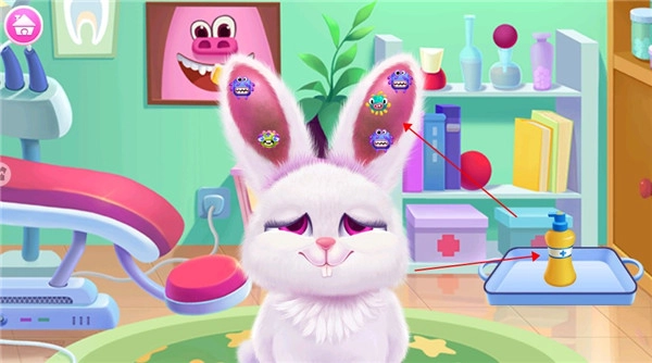 3、当进入治疗模式后,玩家得运用药水,协助兔子清除耳朵上的病毒。