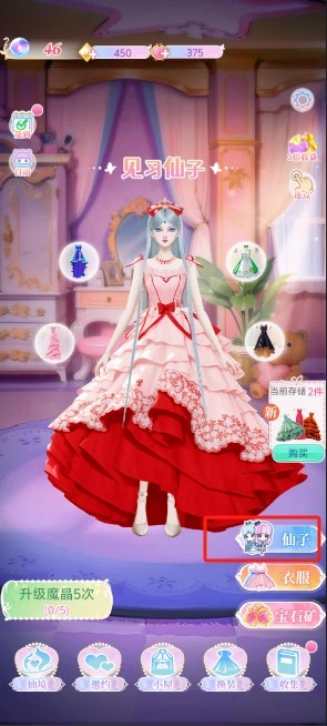第二步:点击“仙子”,找到页面上的“升级”