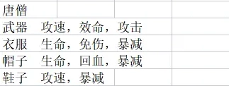 3、唐僧装备属性推荐