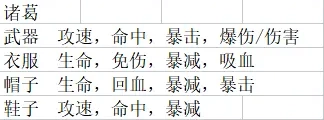 5、诸葛装备属性推荐