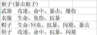 1、暴击猴子(猴子)装备属性推荐