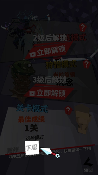 游戏内设有多种关卡与玩法模式可供挑选,我们决定开启下忍难度的挑战模式。