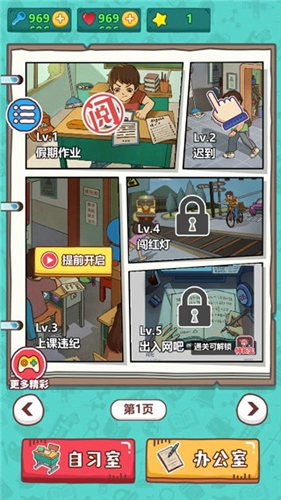 采用诙谐的卡通美术风格,融合了趣味找物与放置类游戏机制,让玩家沉浸式感受班主任日常工作的不易。