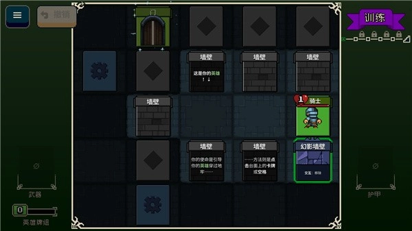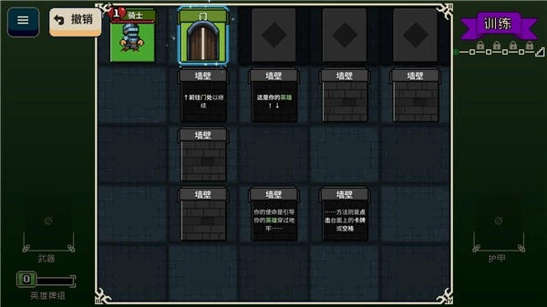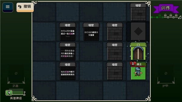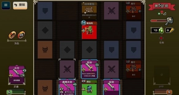 所有装备都按消耗品的思路来设计。不管是卷轴、药水,还是武器、护甲,都设有使用次数上限,一旦次数用完,在当前这一局游戏里就会消失。每次进入新的关卡,系统都会随机生成地图布局,这个布局里包含了英雄的牌组(也就是背包)、怪物的牌组(也就是敌人)以及地形卡牌。