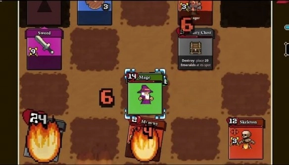 探索环节采用回合制推进,玩家能够自由地与卡牌进行互动,还可以把道具添加到牌组里。尽管游戏没有设置负重方面的限制,但要留意牌组稀释的问题。饰品能够提供被动效果,而且不会消耗;武器和护甲会按照拾取的先后顺序来排列,有一部分装备还带有负面效果,比如“虚荣之光”长剑就会施加减益状态。