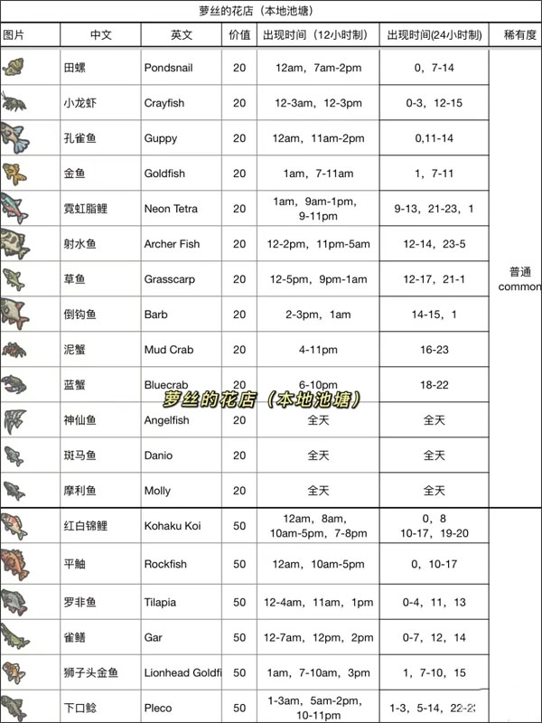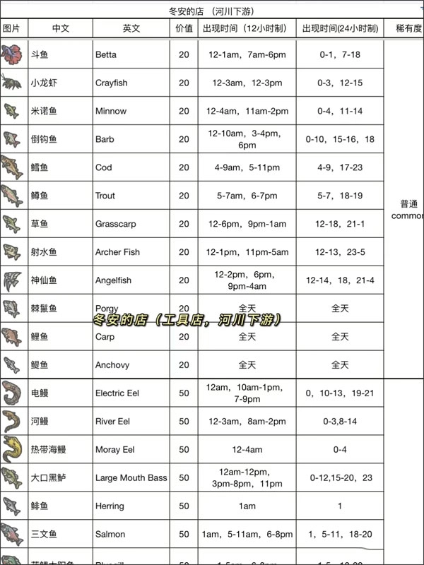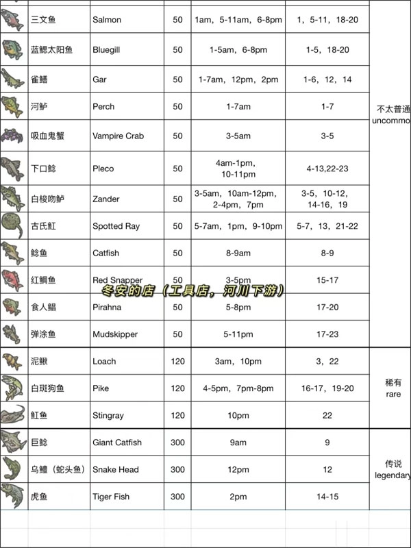 小镇公告板上会发布高价鱼种的信息,这些鱼得在不同的时间和地点才能钓到(具体内容我放到下一篇笔记里啦)。