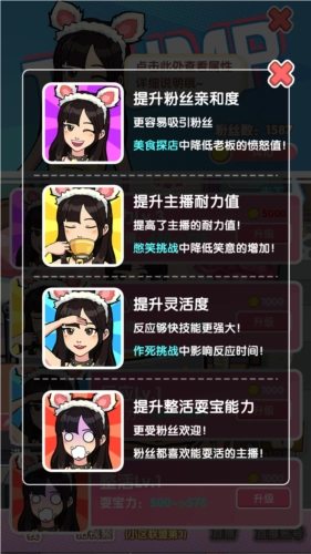 可以为你的网红培养唱歌、跳舞、搞笑等各类技能,玩家能够让网红学习这些技能。